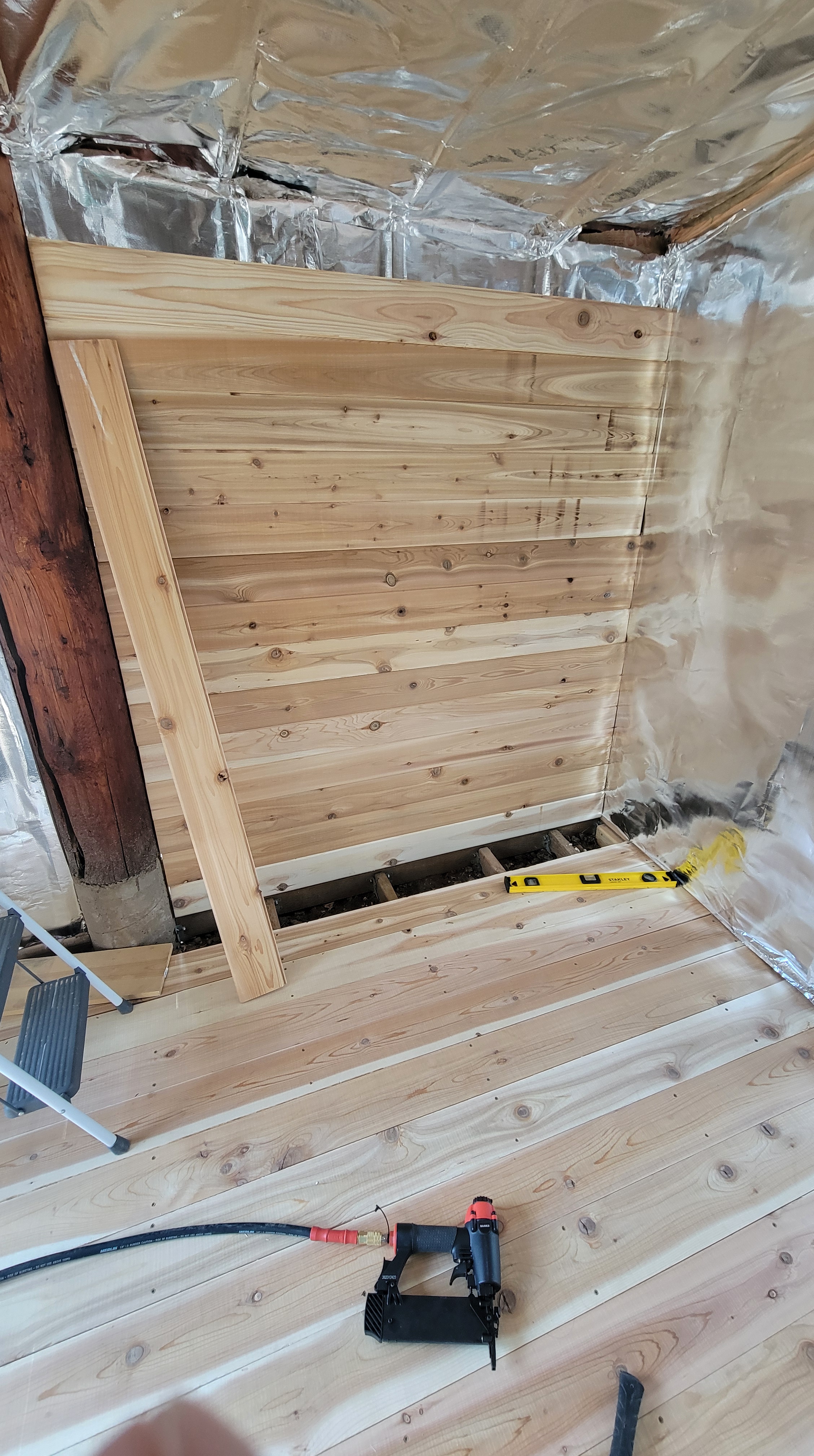 During the sauna build, after identifying that an electric stove was the preferred heat source, I recognized my inability to wire in the 240v appliance directly to the panel. In addition, there were some switch and fixture upgrades and a bit of value engineering (moving the dryer closer to this 240v hookup) that were within the scope. I procured a qualified electrician for this part of the job, and was happy I did. I likely saved myself mountains of headache and weeks of schedule. In addition, even if I could have found the ability to complete the work myself, the codes and permits required to execute this work or sign off on my own work is way out of my understanding.