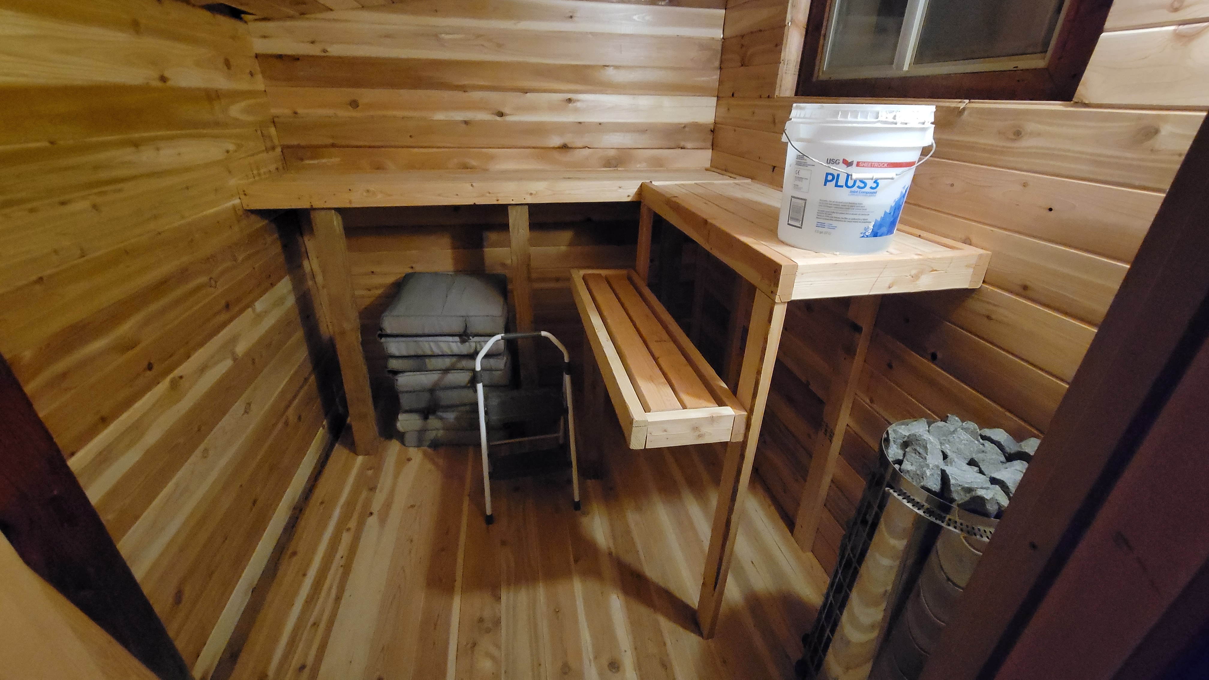 In the case of the sauna, the design phase featured several tradeoffs I had to grapple with. We have a pellet stove to heat the house. Do I get a new primary heater and move the old one down to act as the sauna stove? Do I go with an electric? If so what type of controller? We landed on electric and utilized a minimal dial control setup. It’s worked great so far.